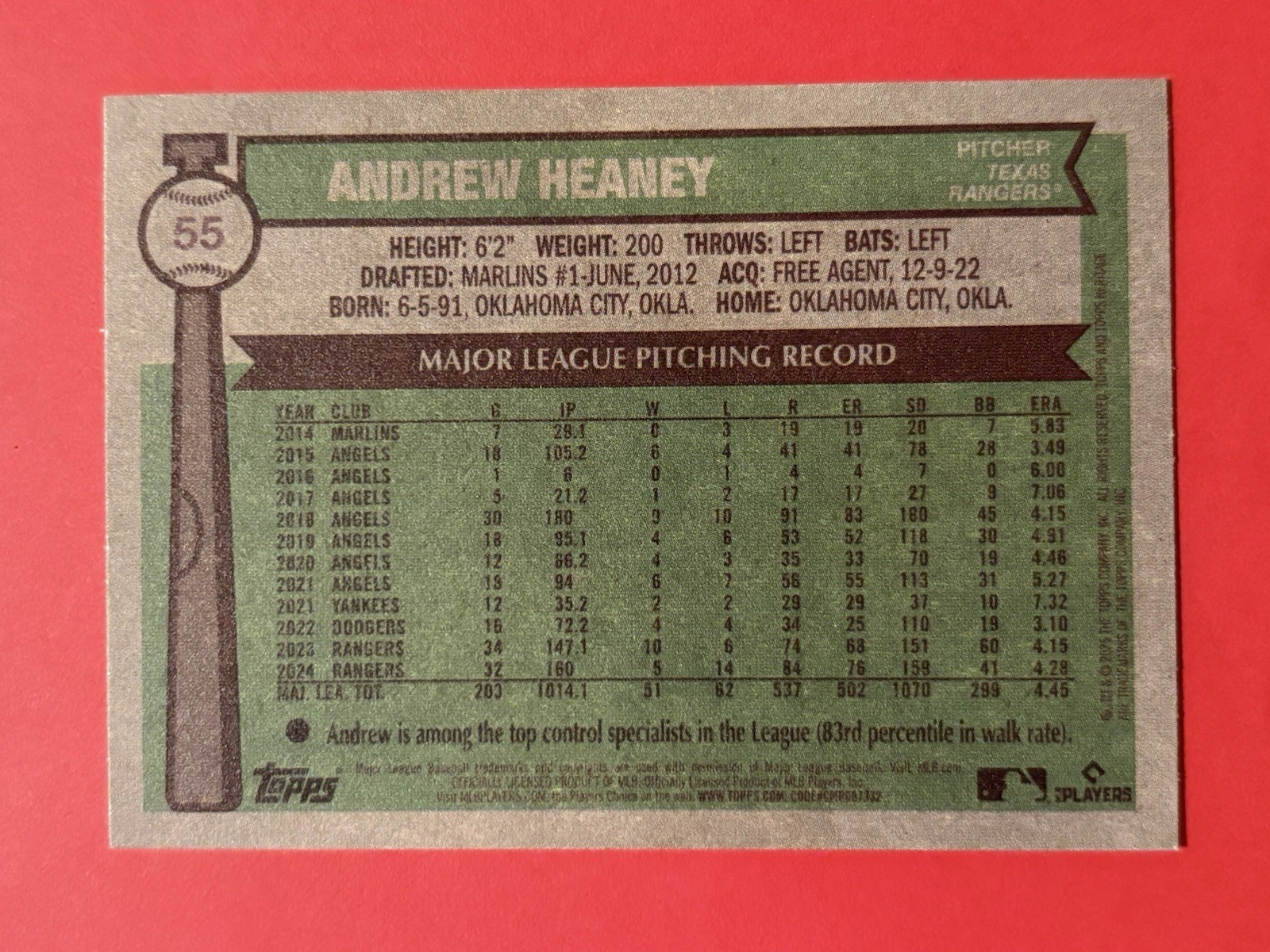 ANDREW HEANEY (082/200) (1776-1976 BICENTENNIAL) 2025 Topps Heritage #55 RANGERS