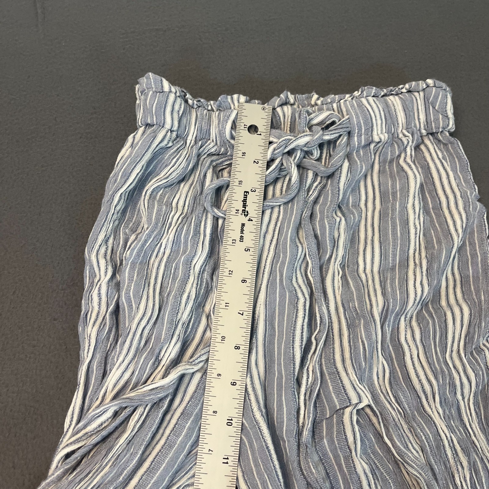 The Angie Women's One Size Palazzo Pants in a small fit are perfect for the beach hippie boho style. Made from rayon fabric, these wide-leg pants feature a drawstring closure, elastic waist, and comfort fit. With a high rise and a 25.5-inch inseam, these pants are ideal for casual occasions in the summer and spring seasons. The multicolor striped pattern adds a fun and festival-like touch, making them a great choice for those looking for a relaxed and carefree aesthetic. Machine washable and easy to care for, these pants are a versatile and stylish addition to any woman's wardrobe.