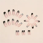 $ 2.11French Cat Eye Blush Press On Nails Long Coffin 24pcs Nail Art