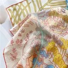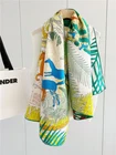 $ 9.88100% Mulberry Silk 20" Square Scarf Women neckerchief Wrap Birds Print Green