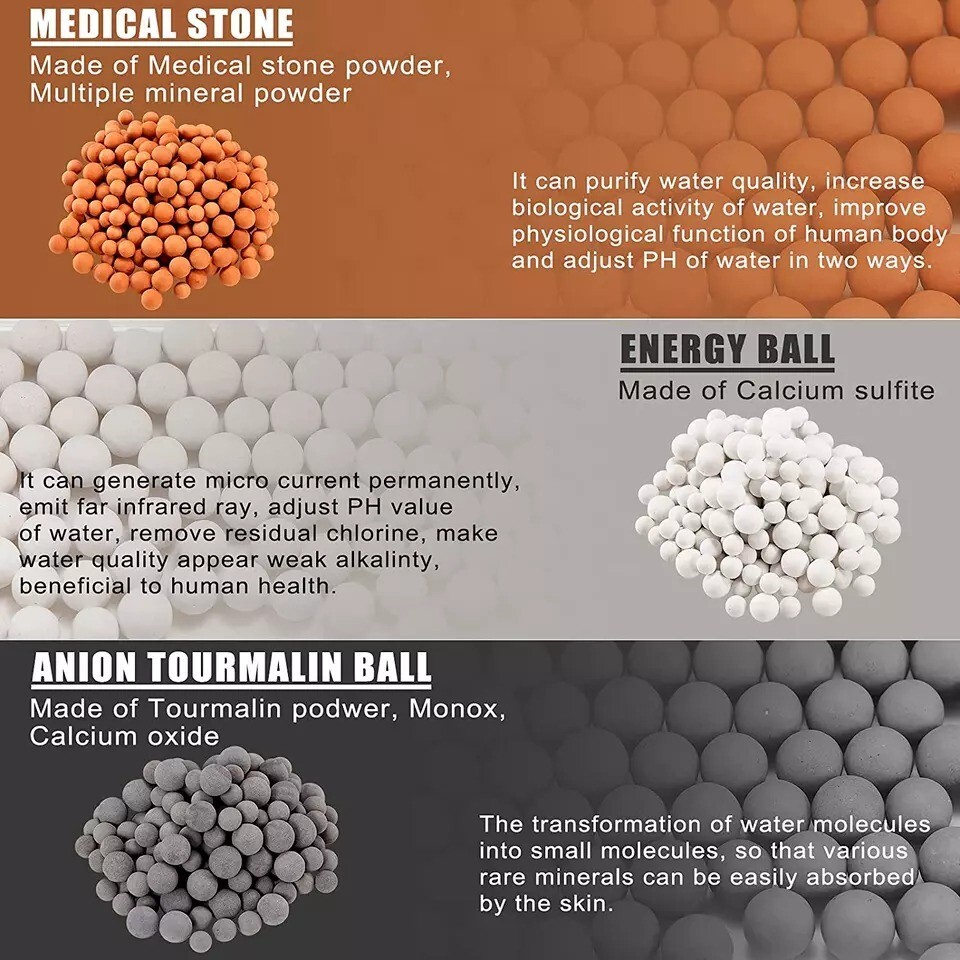 Adequate quantity and wide usage: package comes with 6 packs shower head filter mineral balls in 3 various kinds, enough quantity and colors for filter shower head, fish tank, potted plants and so on; The package total weight is about 200 g Purify and soften shower water: mineral stones refill pack contains mineral beads for handheld shower heads, which can be installed in the shower handle; Including a mixture of 3 mineral stones, anion (grey), ceramic (white) and tourmaline (orange); Nice combination for purifying and softening shower water Safe to use: various types of shower purifying beads can remove chlorine, easily soften and purify shower water, making your skin and hair smoother and softer, thus your oil glands will be kept in balance Make you feel better: replacement anion mineral beads can provide quality water filtration to remove harmful substances, also can be applied to softening hard water, reducing dry skin itching, dandruff, and so on; What's more, with the help of them, skin will be restored more healthier and smoother and hair will be softer and stronger Quality material: anion mineral bead is a kind of ore, containing many elements, which help to keep us more healthy