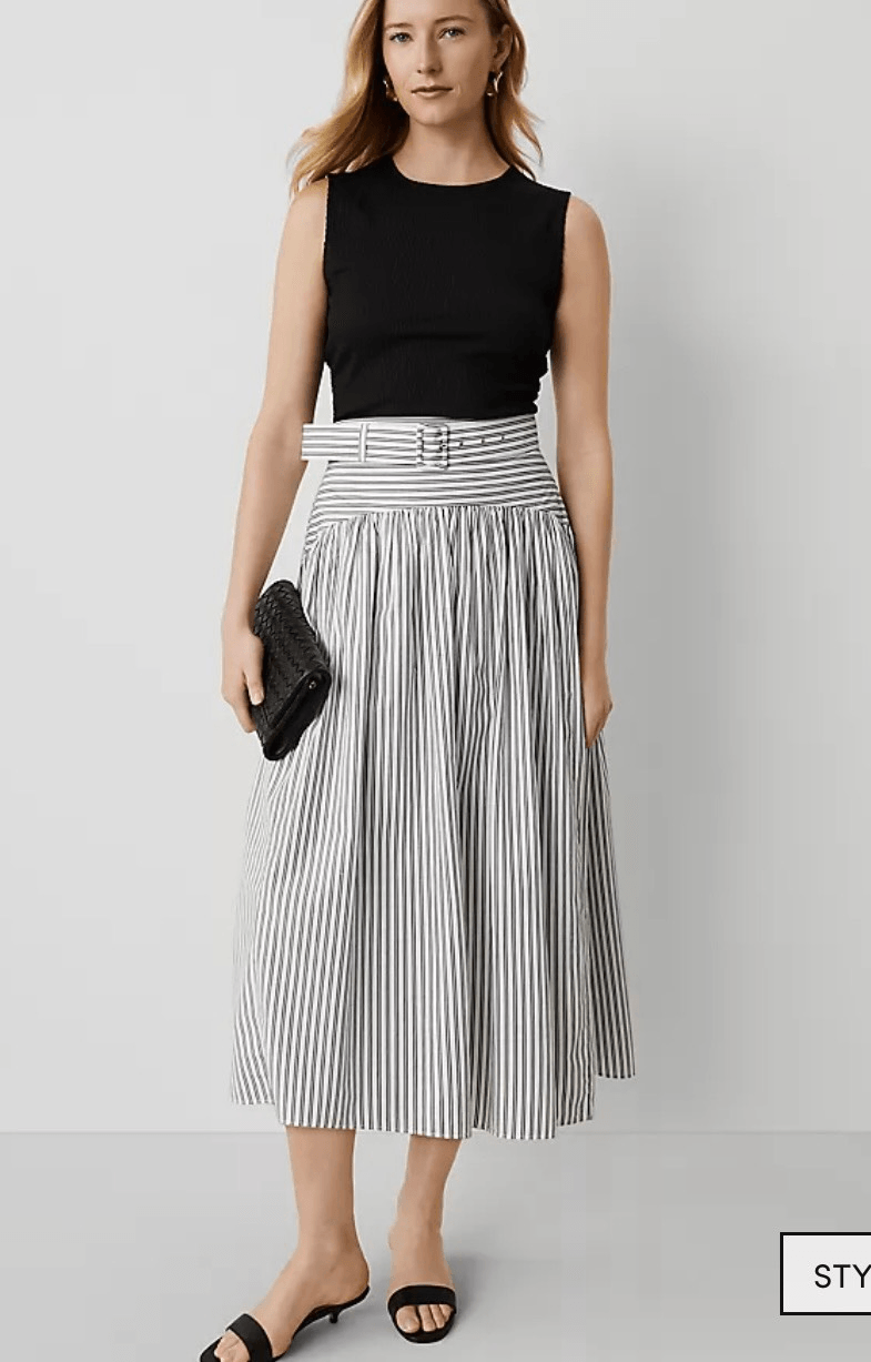 Brand: Ann Taylor Description: high rise belted yoke midi skirt with belt Size: 4 petite Color: blue and white stripe Condition: Gently Worn Very Good ππ» Measurements: Waist: 14β Length: 30β **Bundle and Save!!** all measurements are approximate and taken laying down 9/5 A27