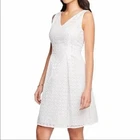 Ann Taylor Factory White Eyelet Lace Fit Flare Sleeveless Dress Size 4 Midi.! ⸻ Description Crisp white eyelet lace with a flattering fit-and-flare silhouette for an easy, feminine look. Sleeveless with a V-neckline and fully lined for comfort. Perfect for brunch, showers, or summer events. From a pet-free, smoke-free home. ⸻ Details • Brand: Ann Taylor Factory • Size: 4 • Color: White • Style: Fit & Flare, Sleeveless, Eyelet Lace • Closure: Back zipper • Fabric: 100% Cotton (Shell & Lining) • Made in: Indonesia ⸻ Measurements • Bust (flat): approx. 16” • Length: approx. 36.5” ⸻ Condition Very good condition with no stains or holes noted. Light natural wrinkling from storage only. ⸻ Search Keywords Ann Taylor dress, white eyelet dress, cotton summer dress