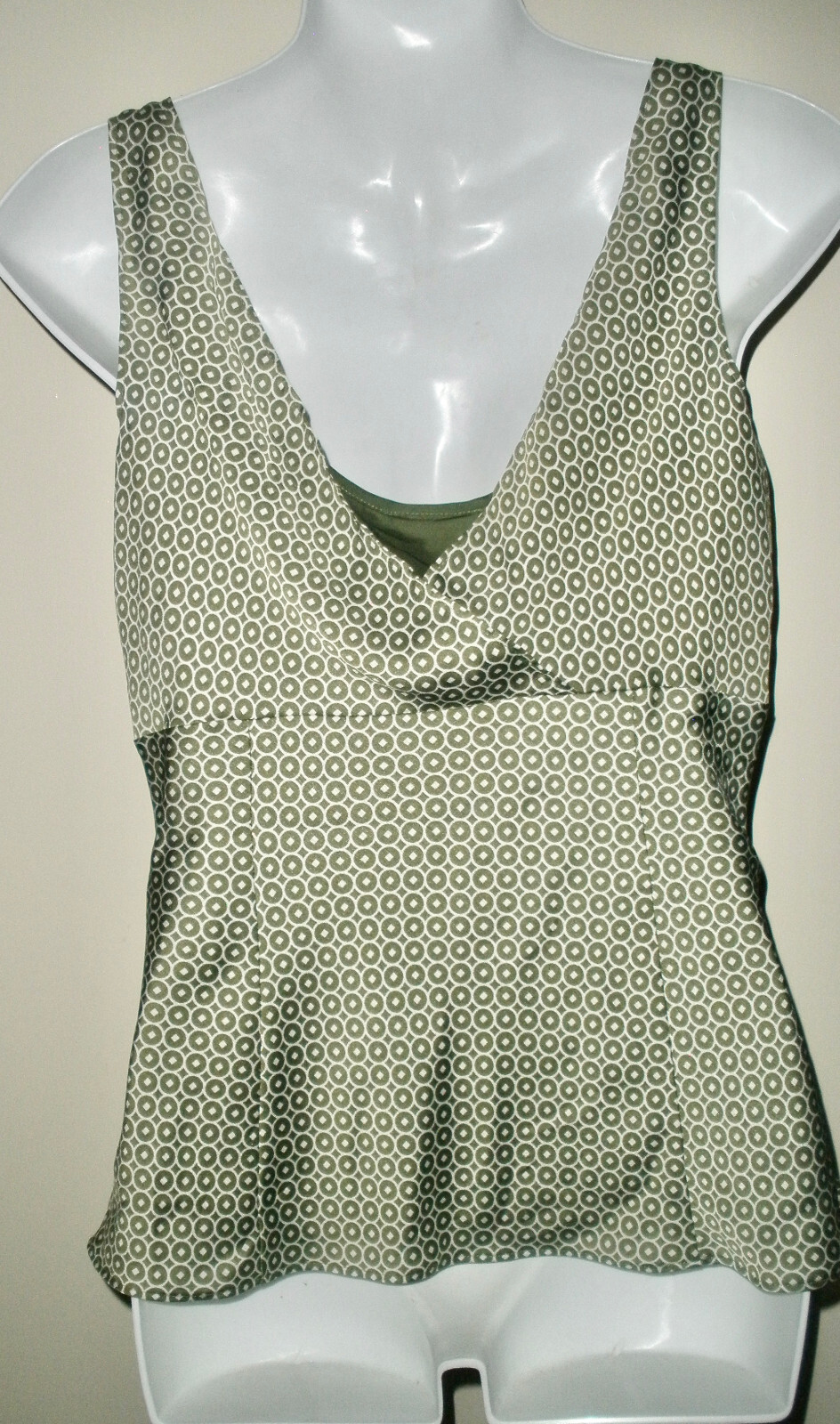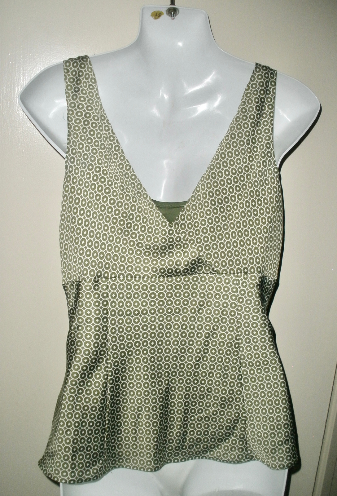 This is for Ann Taylor Loft Blouse It is preowned, It has no rips, tears or stains. It is made of polyester The shirt is shades of green. IT is one piece although it appears to be two. The top layer has polka dots. The bottom layer is solid. It has a zipper down the side. IT has spaghetti straps and tank sleevesl. It measures armpit to armpit laying flat is 18". It measures down the back shoulder is 23". It is a size 2 If you have any questions or problems - before or after. Please message me.