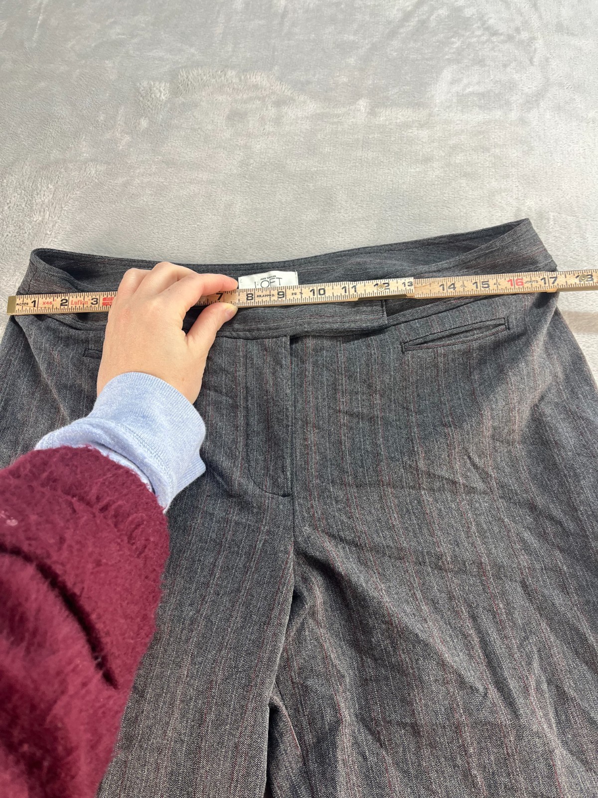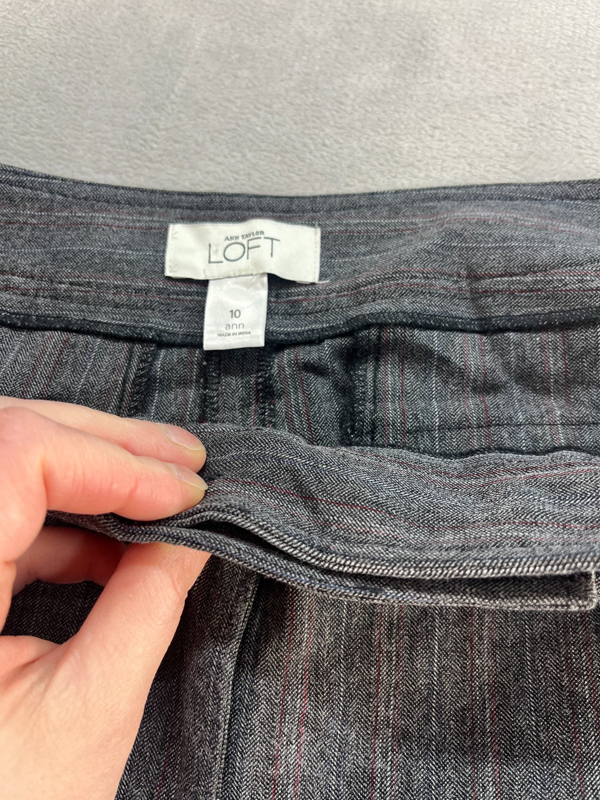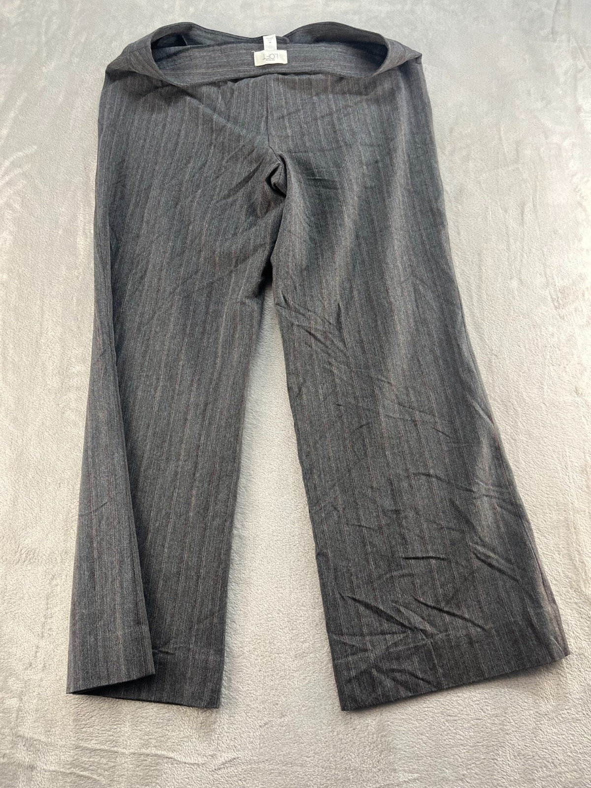 The Ann Taylor Loft dress pants for women in size 10 are a stylish and versatile option for formal events, workwear, or business attire. In a sophisticated gray color, these wide-leg pants feature a mid-rise fit with a zip, hook & eye closure, and are made from a blend of polyester, spandex, and elastine for comfort and flexibility. The pants are machine washable and have a preppy theme, making them a practical and chic addition to any wardrobe.