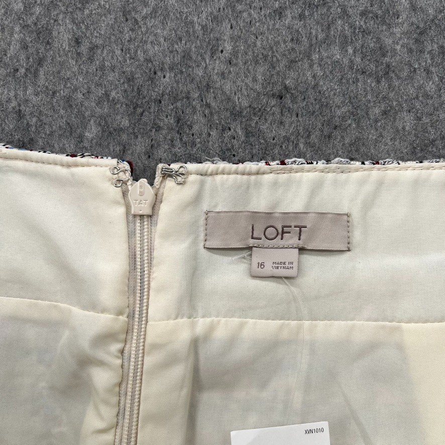 Ann Taylor Loft Blue White Striped Pocket Tweed Pencil Skirt Size 16 NEW
