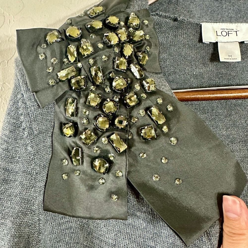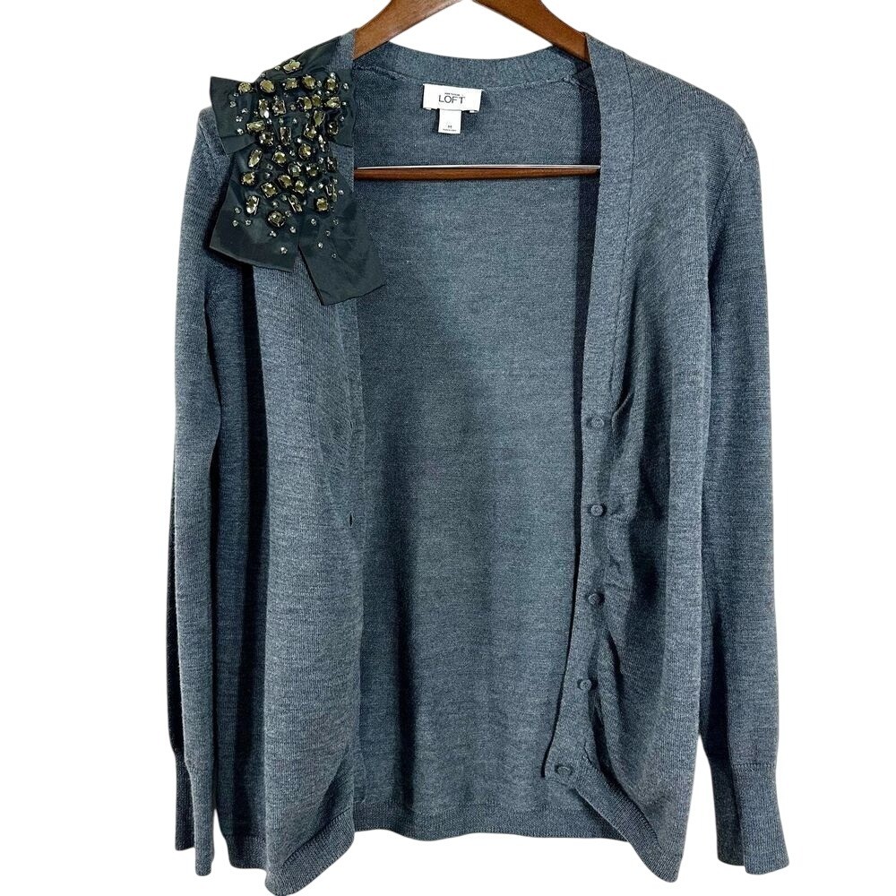 Ann Taylor Loft Womens Cardigan Gray Paillette Merino Wool Blend Sweater Size M 50% Merino Wool 50% Acrylic Button Closure Approx. Measurements: Armpit to Armpit 18" Shoulder to Hem 27" Excellent Preowned Condition Review all Photos for Conditions and Details Carefully Photos May Vary From Photography Lightings From Pet/Smoke Free Home Happy Shopping!