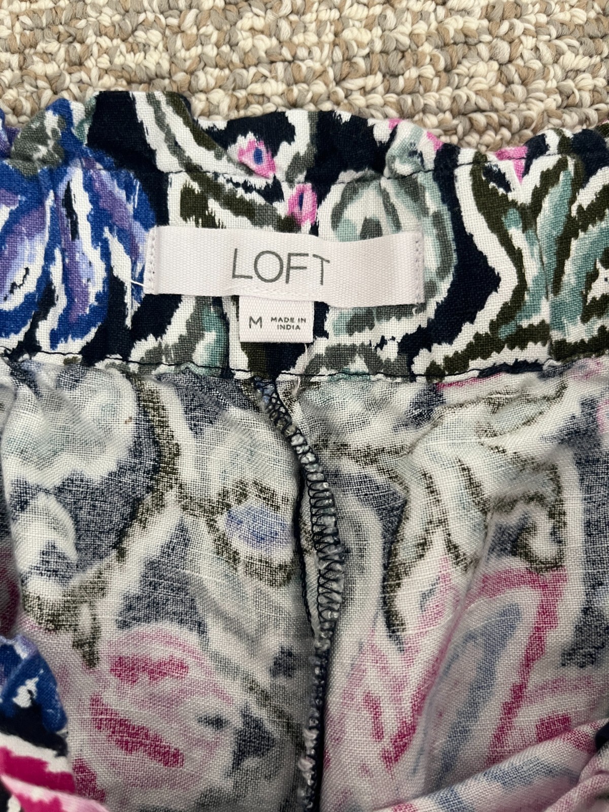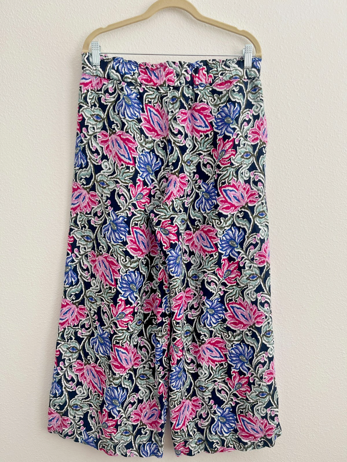 The Ann Taylor Loft Women's Size M Pants are a stylish and versatile addition to any wardrobe. These multicolor floral crop pants feature a wide-leg design with a pull-on closure for easy wear. Made of linen, they are machine washable and perfect for casual or travel occasions in the summer, fall, or spring seasons. The high-rise waist and elastic waistband ensure a comfortable and flattering fit, while the bohemian and flower-themed accents add a touch of whimsy to the overall look. Ideal for women looking for a blend of style and comfort in their clothing choices. - All of our measurements are approximate. Please compare the measurements we provide to an article of clothing you have that already fits. - All of our items are stored in a smoke/pet free area. NOTE: Products are always washed prior to shipment. Be sure to check photos before making any purchase.