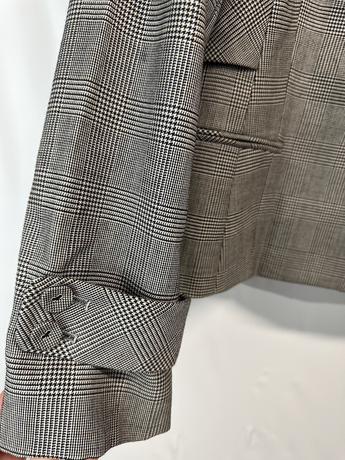 Elevate your professional wardrobe with this Ann Taylor Loft wool blazer jacket. The black and white plaid pattern gives a classic and preppy feel, while the mid-length and long sleeves make it suitable for all seasons. The jacket features a button closure and accents, and is lined with wool for added warmth during winter. This blazer is perfect for business casual, casual, workwear, or any occasion that requires a touch of academia or 80s/90s fashion. The size is a regular fit and suitable for size 10 women. Dry clean only to keep the blazer in excellent condition.