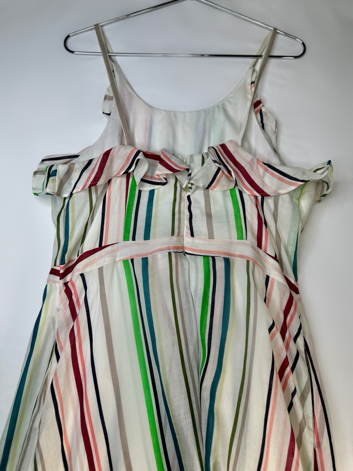 NEW WITH TAG The coloful Stripe Down to It Dress features a relaxed, midi silhouette, Halter square neckline, stripe print, straps, and zip closure.