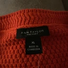The product is a stylish red XL cardigan from the brand Ann Taylor, designed for women. This sweater is perfect for adding a pop of color to any outfit, and its classic cardigan style makes it versatile for both casual and formal occasions. Made from high-quality material, this cardigan is sure to be a fashionable and comfortable addition to any wardrobe.