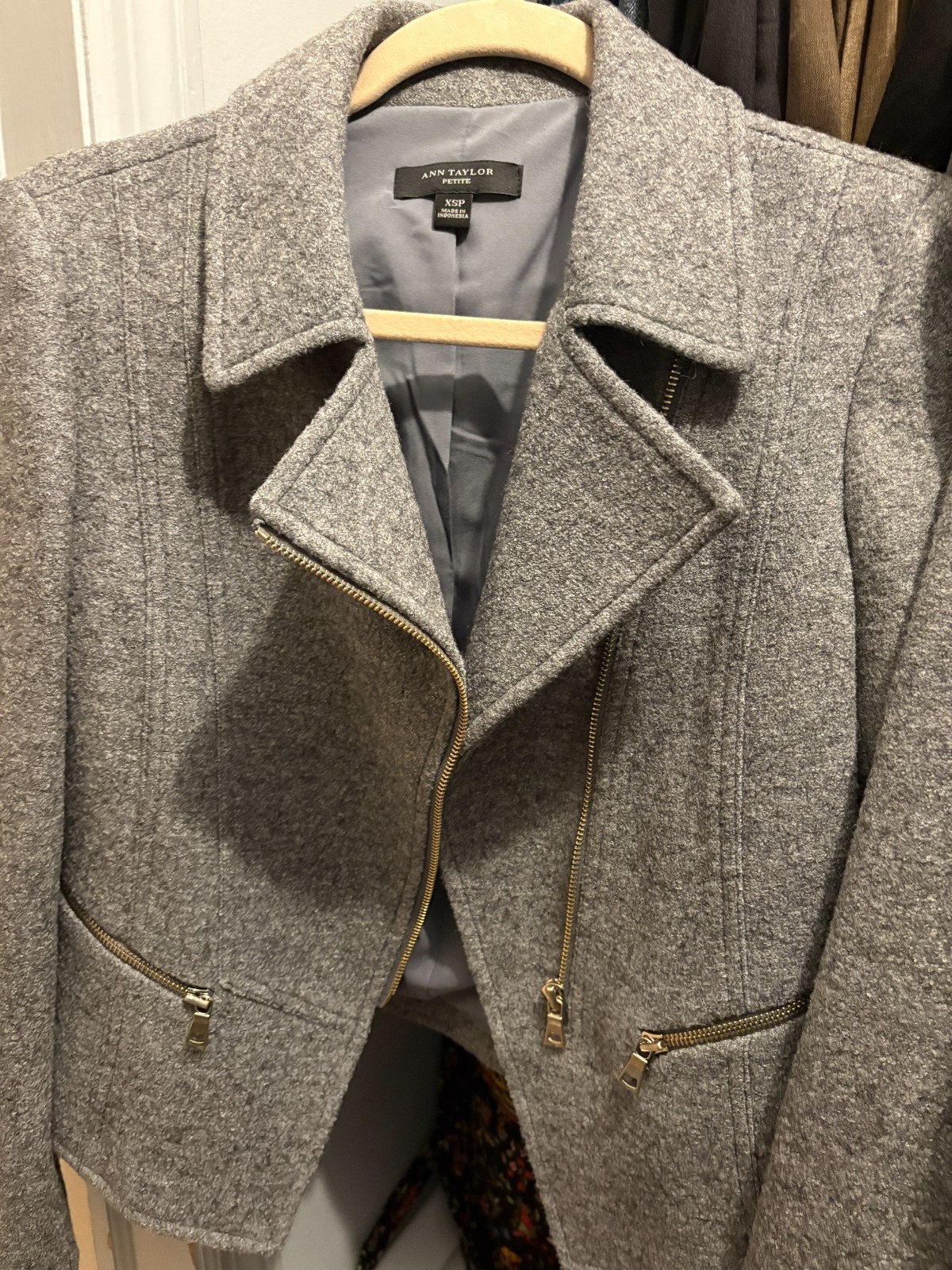 The Ann Taylor Women's Heather Gray Zip Jacket in Size XS Petite is a stylish and versatile outerwear option for women. Made from wool and rayon, this jacket features a zip closure and a classic gray color, perfect for pairing with a variety of outfits. With its petite sizing and tailored fit, this jacket is designed to ensure a flattering silhouette.