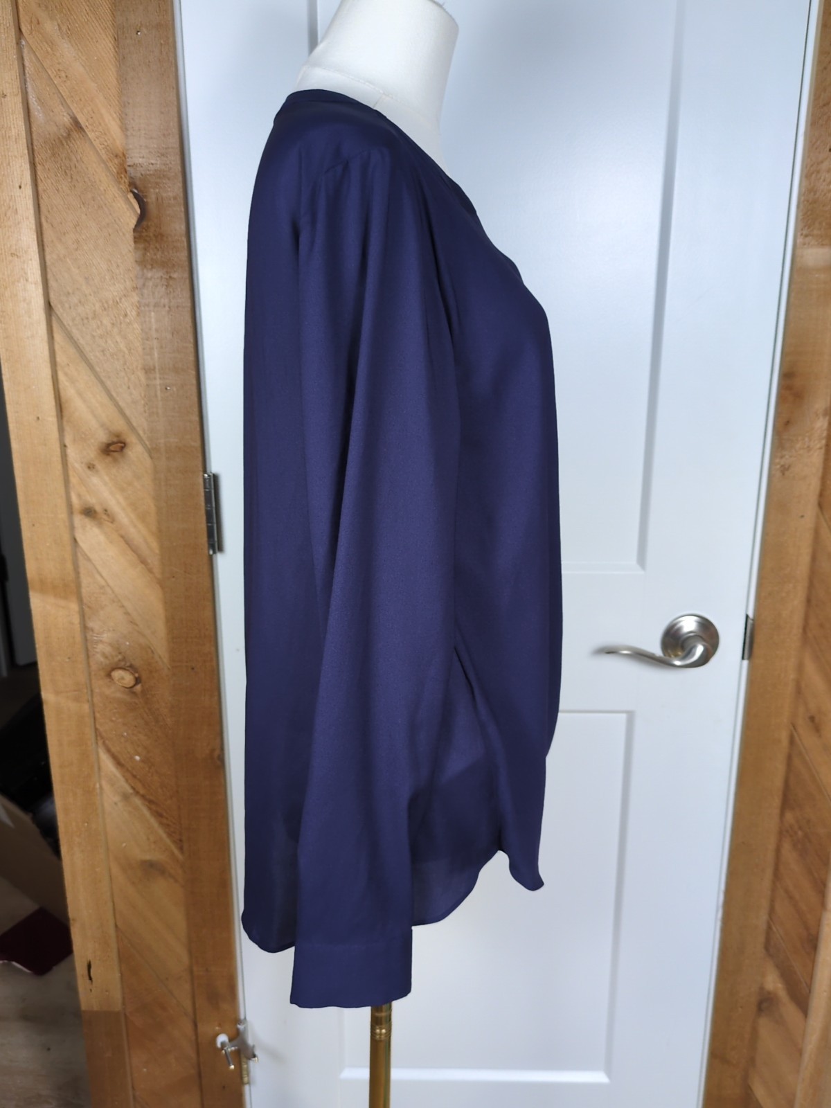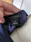 Please note that one sleeve button is missing. Otherwise excellent condition. The Ann Taylor Women's M Navy Long Sleeve Tunic Top with V-Neckline is a stylish and versatile addition to any woman's wardrobe. closes with one snap button. Made of sturdy polyester material, this top features a solid blue color, long sleeves, and a flattering V-neckline. Perfect for casual occasions, this tunic-style top offers a regular fit and pullover closure for easy wear. Machine washable for convenience, this top is ideal for summer, fall, and spring seasons. Add a touch of chic elegance to your outfit with this timeless piece from the renowned brand, Ann Taylor.