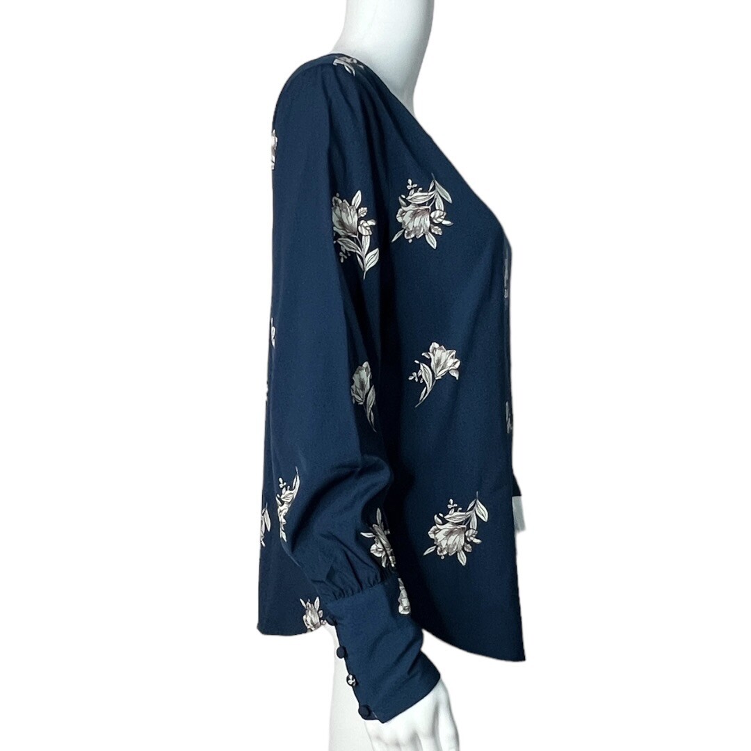 Ann Taylor Shirt Womens XS Teal Blue Blouse Teal Blue White Floral Flower Office Women's Size XS Extra Small Round Hem Wide Button Cuffs Fabric Covered Buttons Balloon Sleeve Pullover Style Workwear Casual Versatile Floralcore Flowercore Bloomcore Measurements are Approximate: Length 22" to 26" Armpit to Armpit19" Gently Used Condition. No Rips Tears or Stains (1713)