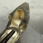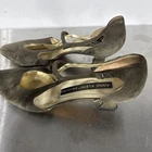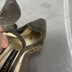 Used shoes with signs of wear. Strap has creases. Suede in good condition. Soles show use.