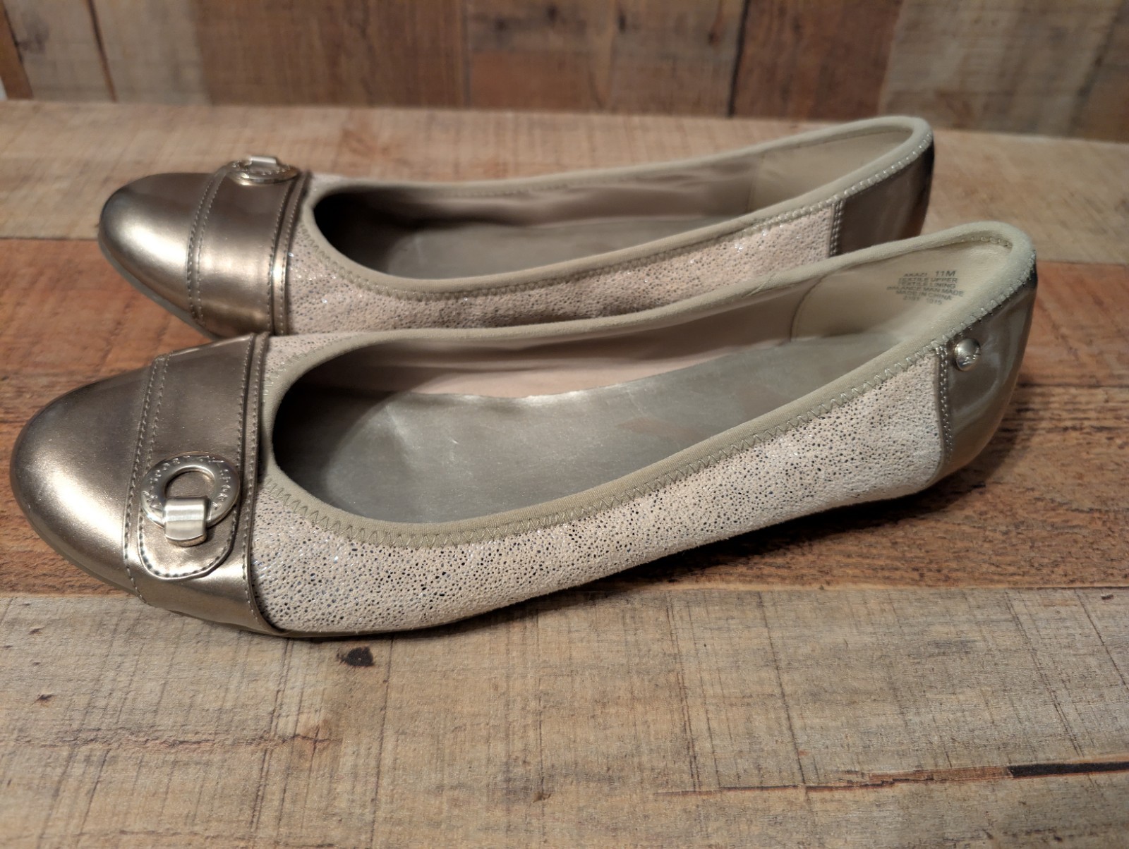 Anne Klein Sport Akazi Size 11M Women's Slip On Gold Casual Flat Shoes Loafers