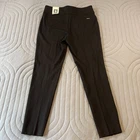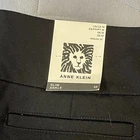 These Anne Klein women's pants in size medium are a stylish addition to any wardrobe. The black pants feature a slim ankle fit with a pull-on closure and faux pockets, making them perfect for various occasions from casual to business. Made from a comfortable ponte fabric with a stretch feature, these pants are machine washable and easy to care for. The gold logo adds a touch of accent to these versatile pants, ideal for all seasons with a stylish and comfortable fit.