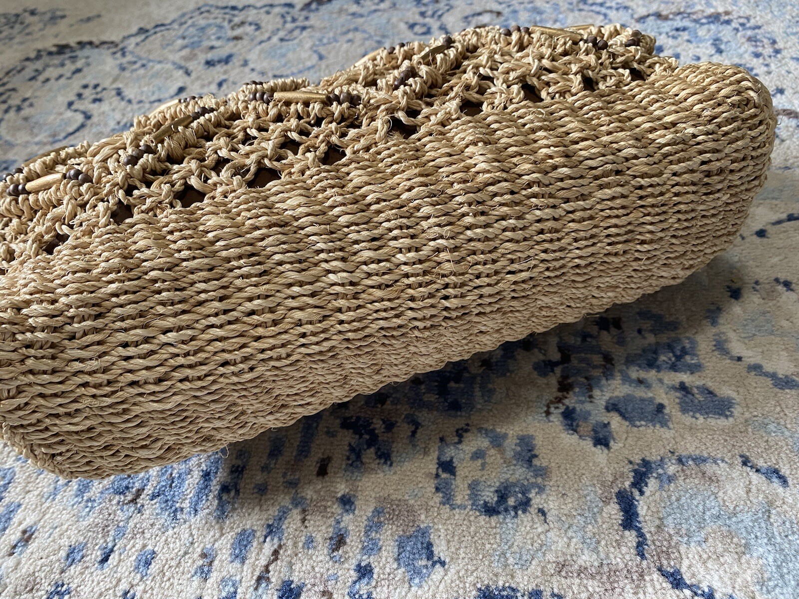 Cottagecore coastal grandma summer vacation travel resort woven straw tote handbag satchel Anne Klein Woven straw jute rectangle shape Wooden handles Lined interior 14”x 9.5” 4”deep 5” handle Excellent gently used condition Vintage 90s Y2K vacation resort travel summer beach bag tote satchel handbag cottagecore coastal grandma