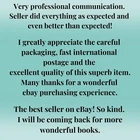 ⭐⭐⭐⭐⭐ An outstanding experience—truly grateful! As a dedicated paperback collector, I look for precision, care, and presentation, and this seller delivered on all fronts. The paperback, featuring breathtaking cover art, arrived in pristine condition, exactly as described. Communication was fast and courteous (even with a hand-signed greeting card), shipping swift, packaging secure, and the shipping cost more than fair. A flawless, satisfying transaction—highly recommended to fellow collectors!