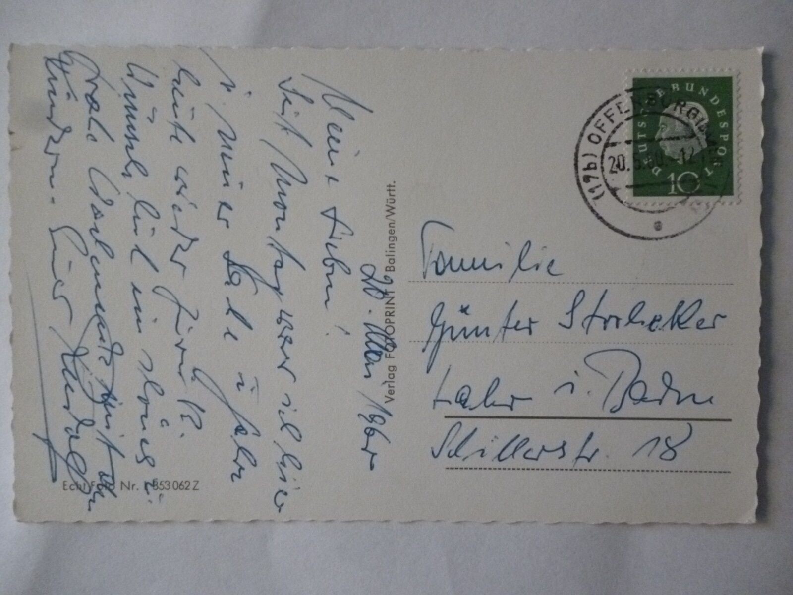 Ansichtskarte Bad Peterstal Schwarzwald 1960 (Nr.591) Sprache Deutsch Gewicht ca. 20 g Bestell-Nr 61295 Bemerkungen - Ansichtskarte Bad Peterstal Schwarzwald 1960 (Nr.591) (--- Suchworte: )Sie finden jeweils ein Foto der Vorder- und Rückseite der Ansichtskarte. Diese Fotos sind Bestandteil unserer Zustand- und Artikelbeschreibung. In der Regel sind die Ecken und Kanten gering / etwas bestoßen. - 591 - Lagerfach: 906-591-G17 Schlagworte Bad Peterstal, Baden-Württemberg, Deutschland, Ansichtskarte, Baden-Württemberg, Schwarzwald, Ortsansicht, Ortsansicht, Landeskunde, Ortsgeschichte Unser Preis EUR 19,50 (inkl. MwSt.) Versandkostenfrei innerhalb Deutschlands Weitere Abbildungen Aufgenommen mit whBOOK Sicheres Bestellen - Order-Control geprüft! Artikel eingestellt mit dem w+h GmbH eBay-Service Daten und Bilder powered by Buchfreund (2025-12-08)