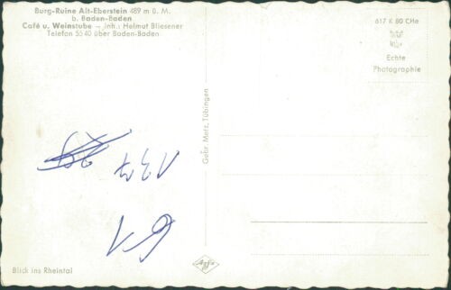 Ansichtskarte Burg-Ruine Alt-Eberstein b. Baden-Baden (Nr.968) Sprache Deutsch Gewicht ca. 20 g Bestell-Nr 65347 Bemerkungen - Ansichtskarte Burg-Ruine Alt-Eberstein b. Baden-Baden (Nr.968) (--- Suchworte: )Sie finden jeweils ein Foto der Vorder- und Rückseite der Ansichtskarte. Diese Fotos sind Bestandteil unserer Zustand- und Artikelbeschreibung. In der Regel sind die Ecken und Kanten gering / etwas bestoßen. - 968 - Lagerfach: 914-968-D18 Schlagworte Baden-Württemberg, Deutschland, Ansichtskarte, Baden-Württemberg, Ortsansicht, Landeskunde, Ortsgeschichte Unser Preis EUR 15,50 (inkl. MwSt.) Versandkostenfrei innerhalb Deutschlands Weitere Abbildungen Aufgenommen mit whBOOK Sicheres Bestellen - Order-Control geprüft! Artikel eingestellt mit dem w+h GmbH eBay-Service Daten und Bilder powered by Buchfreund (2025-12-08)