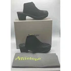 This leather mule with a sturdy block heel suits casual and dressy ensembles while a neutral hue makes for simple pairing. 2'' heel with a 1'' platform Slip-on Leather upper Leather lining Man-made sole Imported