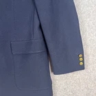 Anthony Allan Blazer Men's 42R Navy Blue Union Made USA Sport Coat A distinguished navy blue blazer for men, embodying classic American craftsmanship. This single-breasted jacket features a two-button closure with elegant gold-tone buttons on the front and sleeves, adding a touch of sophistication. A notched lapel and flap pockets contribute to its traditional design, while the fully lined interior ensures a comfortable fit. Perfect for business-casual events, smart-casual gatherings, or adding a polished touch to your everyday style. Measurements: • Chest (pit to pit): 21 inches • Length (from bottom of collar): 31 inches • Sleeve Length: 25 inches Type: Blazer Outer Shell Material: Unspecified Department: Men Color: Blue Lining Material: Polyester Features: Shoulder Pads, Single-Breasted Accents: Button Model: Classic Blazer Closure: Button Occasion: Business, Casual, Formal, Party/Cocktail, Workwear
