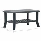 Looking for something more refined and compelling in your outdoor space? This sleek and durable coffee table is an optimal choice for you! Thanks to the weather resistant plastic, you will never have to worry about discoloring, rusting or peeling. It is ideal for daily outdoor use. The bottom is designed with a storage shelf for you to place magazine, books or other essentials and keep them within easy reach. You can easily move it around as it is lightweight. No assembly is required. Color: Anthracite Material: Plastic Dimensions: 35.4" x 23.6" x 18.1" (L x W x H) Includes a storage shelf Weather resistant Shipping Restrictions Due to the limited access of our couriers, this item cannot be delivered to the following locations: Alaska Federated States of Micronesia Guam Hawaii Marshall Islands Military Posts (APO / FPO) Palau Puerto Rico US PO BOX Virgin Islands Our customer support will contact buyers for orders with no shipment service, and these orders will be cancelled and fully refunded afterwards.
