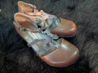 Elevate your shoe collection with these stunning Anthropologie Antelope Ankle Leather Wedge Sandals Closed Toe Shoes. Featuring a trendy animal print pattern with a snake character, these size 39/8 sandals in brown color are perfect for any fashion-forward woman. The slingback style, wedge heel and closed toe design add to the elegance of these platforms. The upper material is made of high-quality leather that ensures durability. These Anthropologie Wedge Sandals are a perfect addition to your footwear collection that will upgrade your entire look.
