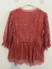 The Anthropologie Blank London Pink Lace Boho Top in Medium size is a stylish blouse designed for women. Made from delicate lace fabric with a London theme, this top offers a unique and feminine look. The pink color adds a pop of vibrancy to the boho style, making it a versatile piece that can be dressed up or down for various occasions. Perfect for those who appreciate Anthropologie's quality and attention to detail in their clothing designs. Measurements Pit to pit: 20 in Length: 25 in Condition: Pre owned and excellent - no visible flaws. 250207 B_M001