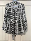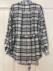 Anthropologie/By Anthropologie | Plaid Pattern Tunic Shirt size 4. This soft and cozy tunic silhouette button front shirt features a textured plaid weave, tucking/pleats across the bodice and a curved shirttail hem. Perfect for layering over knit leggings - it's a pairing of unsurpassed comfort and versatility, and never goes out of style. 61 % viscose 28 % cotton 11% wool