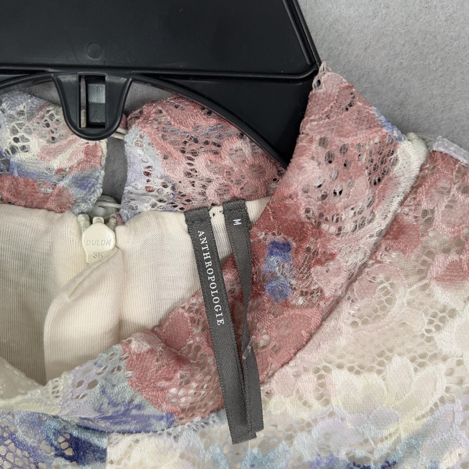 Anthropologie Dress Womens Medium Lace Floral Mock Neck Fitted Long Sleeve Midi Condition: Still has tags, excellent pre owned condition. Elegant multicolor floral lace overlay featuring blush pink, cream, blue, and lilac hues Long sleeve fitted design with ruched front detail for flattering shape Scalloped lace trim at cuffs and hem for delicate finishing touch Material: Shell 90% Nylon, 10% Elastane; Lining 95% Viscose, 5% Elastane Tag size: Medium Womens Retail Price: $168.00 USD / $188.00 CAD Approximate flat measurements shown in photos (see pictures for ruler placement) Color: Pink Combo Perfect for weddings, parties, or special occasions with stylish floral lace design Measurements: - Previous washings may change the sizing written on the tag. - Please refer to the photos above for all measurements. - Please compare our measurements to that of one of your favorite garments. - Please note, item measurements are approximate . All items are bagged and sealed after being photographed, then stored in a smoke free environment to ensure the item is exactly the same as when photographed. All items have been washed per eBay standards & policies. I carefully package and ship daily. Feel free to contact me with any questions.