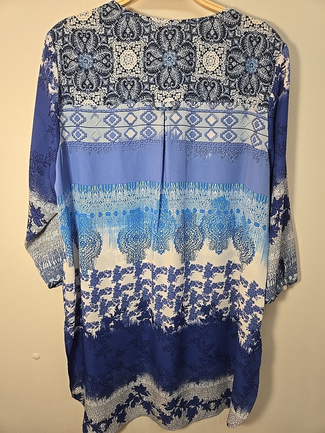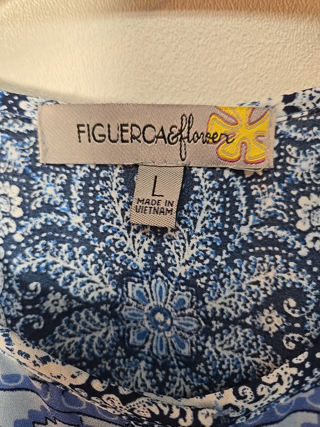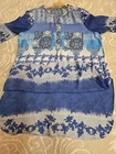 I was really happy the seller accepted my offer. This colorful cotton blouse was shipped promptly, and carefully packaged in tissue and a shipping envelope. It is even prettier than the pictures posted on the seller's site described. The cotton is soft, the colors like new. The final price was a good value for such a nice top.