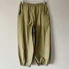 By Anthropologie Packable Parachute Pants in Holly (an olive green). Size XS petite. Highrise. Adjustable bungee at waist. Zipper fly with hook closure. Tapered leg. Retailed for $130. Pre-owned, excellent used condition. All measurements are approximate, not exact. Inseam: 26" Waist: 13.5" measured flat Rise: 11" Leg opening: 7.25" measured flat