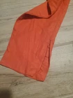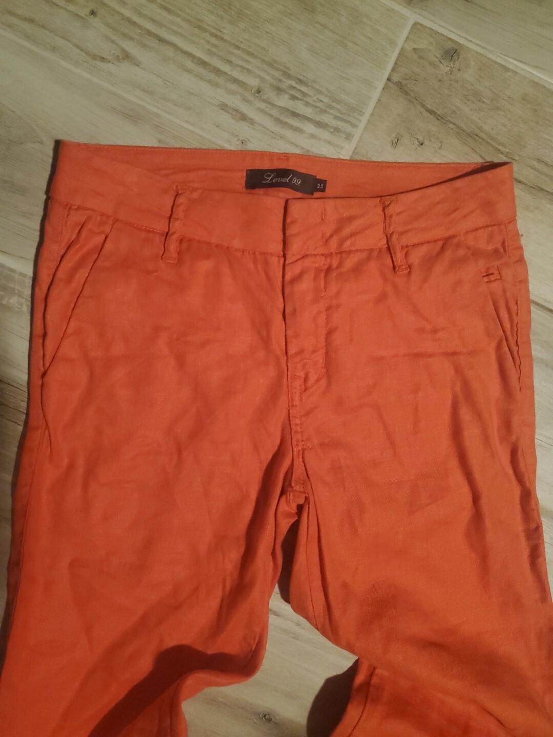 These Anthropologie Level 99 pants are a stylish choice for both travel and casual wear. The orange linen fabric gives off a bohemian and retro vibe, while the minimalist design with button and zipper closures adds a touch of sophistication. The tapered leg style and ankle length make them versatile for all seasons, and the lightweight material ensures comfort. With features like slit details, pockets, and a ruched waist, these pants offer both style and functionality for a chic and relaxed look.