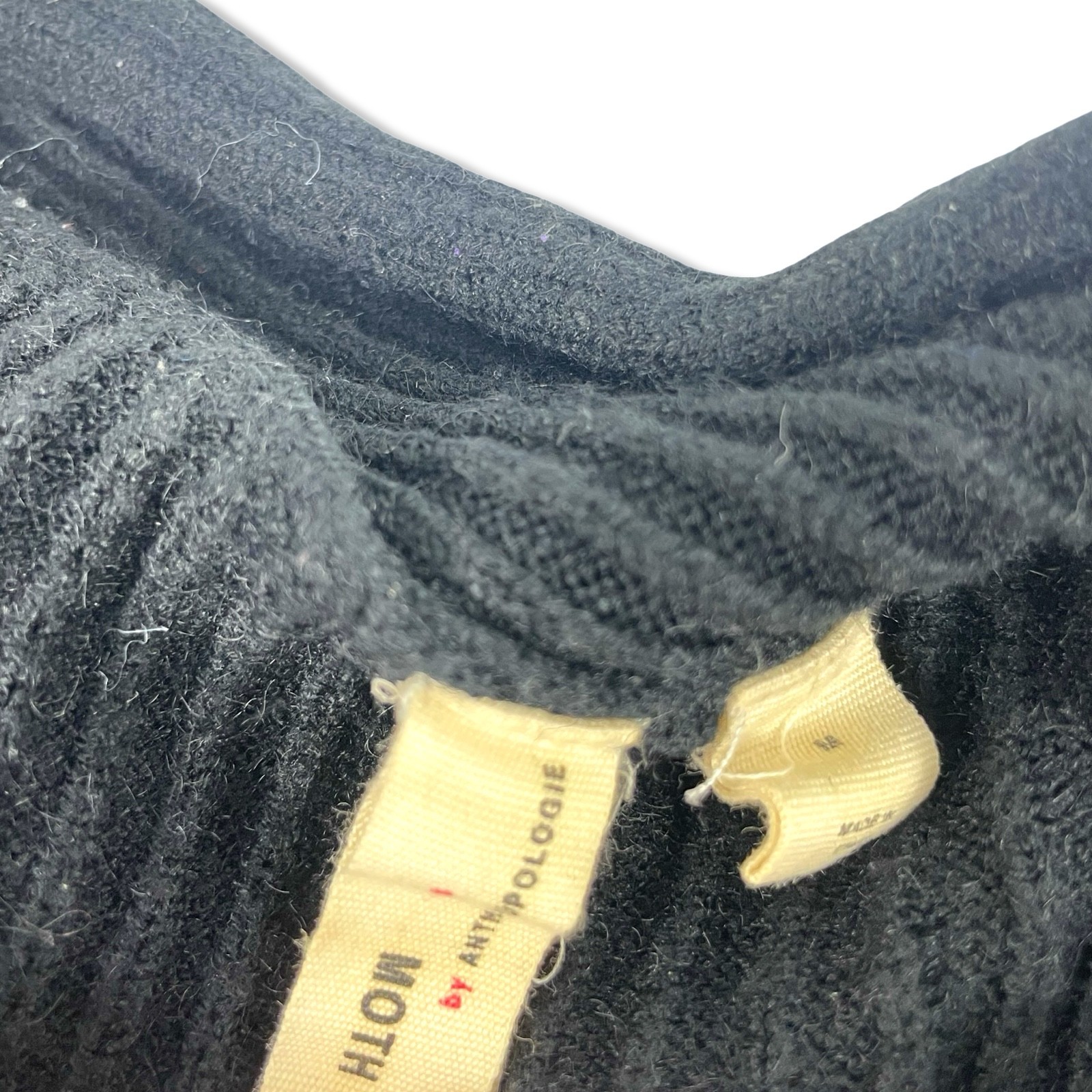 Anthropologie MOTH Off-Shoulder Rib Knit Sweater Size M — Black Features: • Off-the-shoulder neckline • Dramatic balloon sleeves • Soft ribbed knit • Cropped flattering fit • Great for layering Measurements (approx): • Bust: 21" pit-to-pit • Length: ~19" Condition: Good pre-owned condition. Some lint/fuzz typical of this knit, easily removable. Ships fast & with care 💛