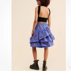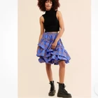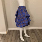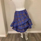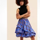 Anthropologie Maeve Tiered Ruffled Bubble Mini Skirt Blue Motif Excellent Condition Size 8 SOLD OUT ONLINE! A Greek Goddess, and A Famously Beautiful Irish Warrior Queen! Flat Waist Concealed Left Hip Zipper With Hook and Eye Mini Silhouette Tiered Ruffles Fully Lined