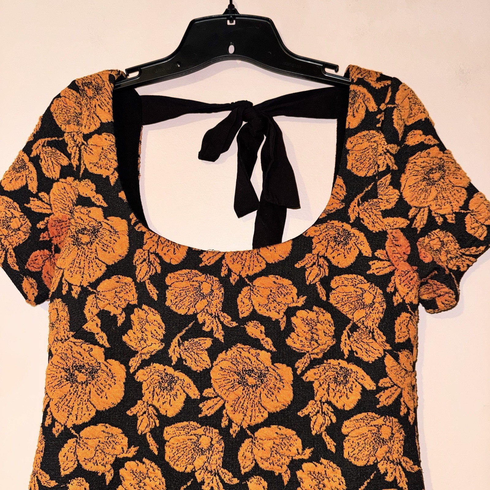 Anthropologie - Maeve Orange / Black Floral Motif Pullover Styling Jacquard Mini Dress Size: XS Like New!!
