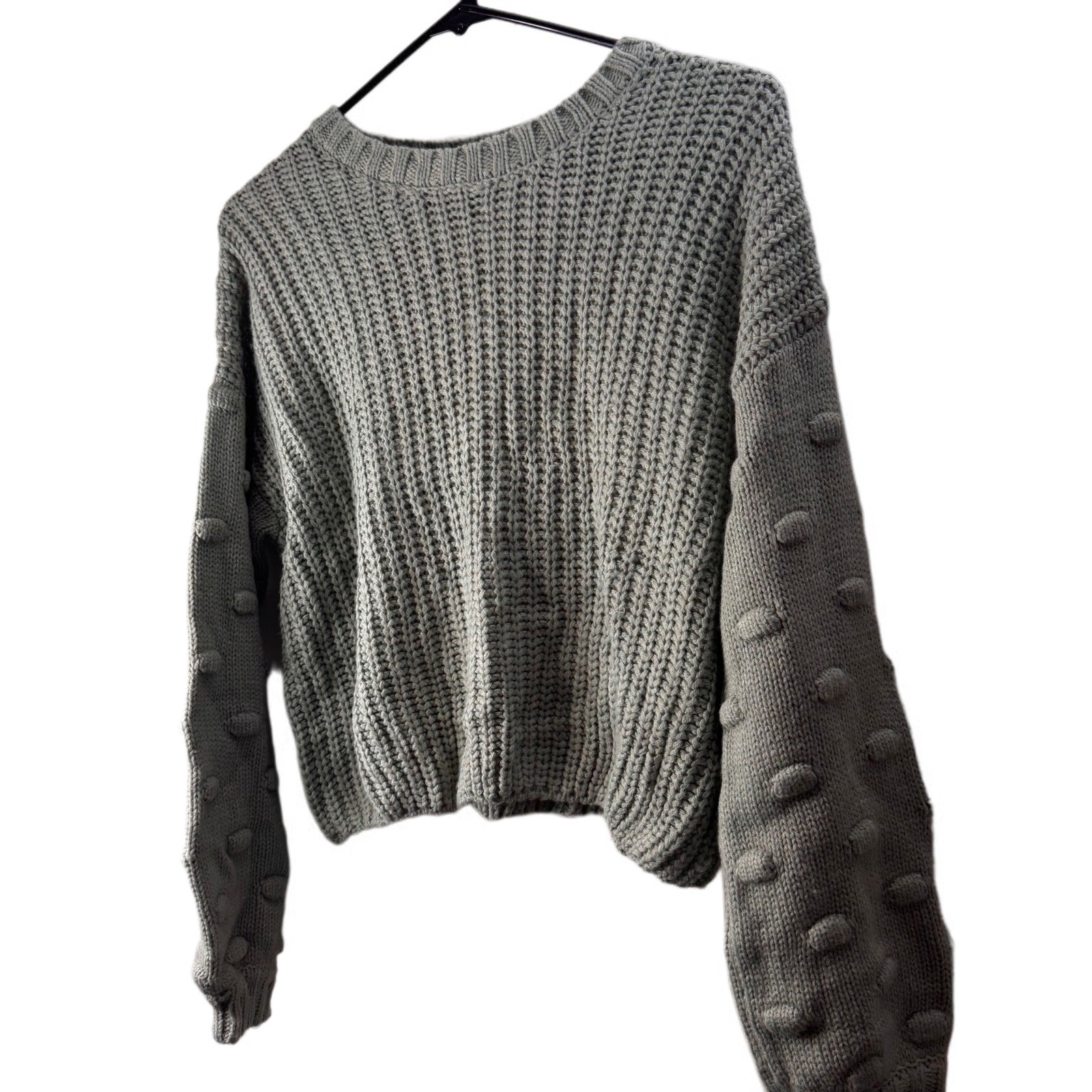 Style: Pullover Color: Sage Green Department: Women Type: Sweater Material: Acrylic Sleeve Length: Long Sleeve Neckline: Round Neck Features: Bobble Sleeve, Knit, Cozy, Cropped Pattern: Solid Sleeve Type: Balloon Sleeve Fabric Type: Knit Keywords: Moon & Madison, Sweater, Pullover, Knit, Bobble Sleeve, Long Sleeve, Womens, XS, Extra Small, Sage green Sweater, Acrylic Sweater, Casual Sweater, Fall Sweater, Winter Sweater