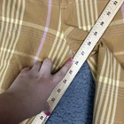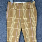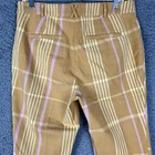 These Anthropologie dress pants are a stylish addition to any wardrobe, featuring a mustard yellow plaid pattern and a cropped length, perfect for a bohemian or preppy look. The pants are a size 10 with a classic fit and a straight leg style, making them versatile for various occasions like workwear, parties, or casual outings. Made from a cotton blend fabric with a knit texture, these pants also have a zip and hook & eye closure and a flat front design for a polished finish. Ideal for summer, fall, or spring seasons, these pants offer both style and comfort for the modern woman.
