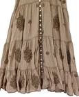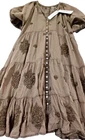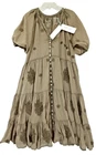 COMBINED SHIPPING AVAILABLE ON ALL ITEMS - JUST ASK Anthropologie NWT Tiered Empire Embroidered Dress Button Up Kyla Seo Coquette LG - Olive Green MSRP $135 Item ships in protective tissue and sealed non PET poly pouch from pet/smoke free home for your peace of mind. No Flaws - Excellent Condition. Review Photographs for condition & Care FEATURES whimsical Posie Dress - fully lined Earth tome olive green Hand embellished embroidery throughout puffed sleeves. Empire waist button front boho-inspired flattering feminine flowy shape dress up or down to suit your mood and the event. SIZING Size - Large Length:42 in pit to pit : 21 in Bust : 42 in Waist: free Hips: free CARE INSTRUCTION machine wash cold gentle cycle lay flat to dry iron on cool or dry clean