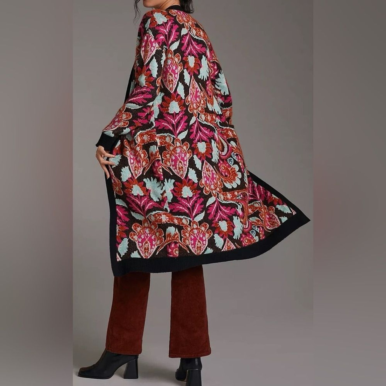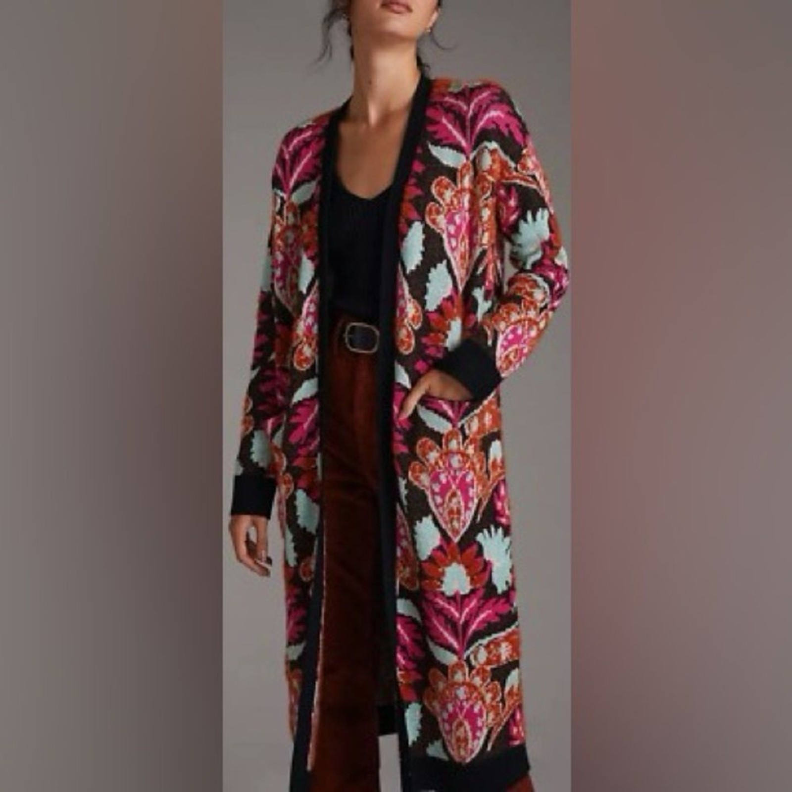 $ 10.04Knox Rose Cardigan Open Front Draped Waterfall Front Floral Gray White Women's S