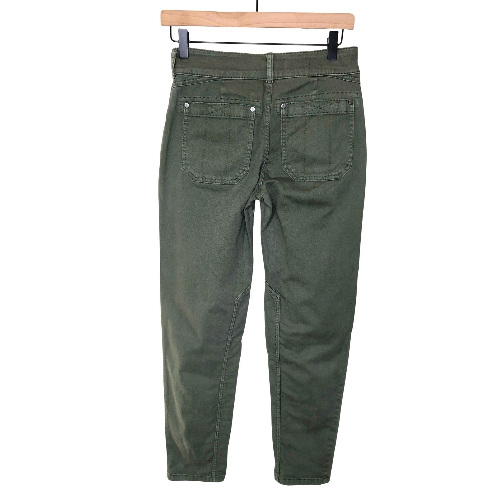PILCRO olive green utility cargo pants. High-waisted design with a double button closure and zip fly. Features multiple functional pockets with stitched detailing throughout. Versatile for casual outings or a stylish travel ensemble. Preowned in great condition. Has a watermark on front pocket. See picture for details. Measurements: • Waist: 12 in • Inseam: 27 in • Rise: 10 in • Leg Opening: 6 in Size:23 Style: Cargo Department: Women Material: Cotton Blend, Elastane Leg Style: Tapered Type: Pants Features: Stretch, Pockets Closure: Zip, Button Pattern: Solid Accents: Button, Zipper Theme: Army Occasion: Casual, Workwear Waist Size: 23 in Fit: Slim Rise: Mid (8.5-10.5 in) Front Type: Flat Front high rise, straight leg, casual wear, travel pants, workwear, minimalist, streetwear, comfortable, fashionable, military style, army style pants • I ship within two business days. • All items come from a pet-free, smoke-free home. Thanks for shopping at Second Harvest Shop! Your support means the world to us.