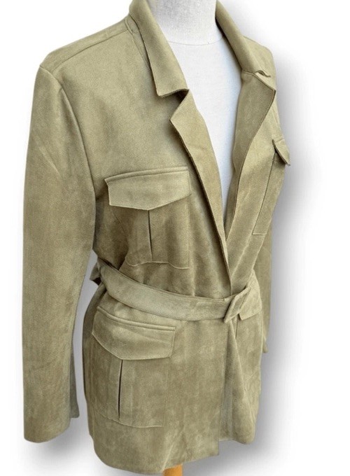 Anthropologie Solitaire Faux Suede Olive Belted Safari Utility Jacket Blazer Med Excellent Condition No rips, stains or any damage Beautiful olive green faux suede super soft comfy blazer. Can be worn casually or classy. Please see pictures Kindly send me a message if you have any questions Thank you for looking 🙂 Bin 14