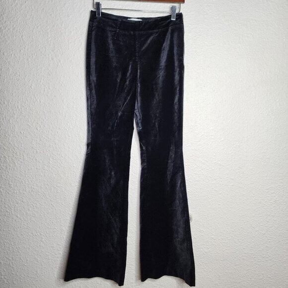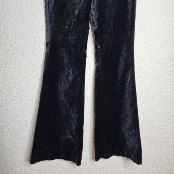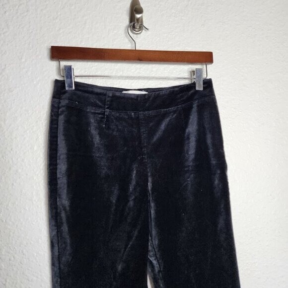 Anthropologie Black Velvet Flared Side Zip Closure Pants Women's Size 0 Cotton, viscose, elastane Velvet fabrication Back welt pockets Side zip styling All measurements are taken flat across Size 0 Waist 12.5 Rise 9.5 Inseam 32.5 Great Condition Inside Button Fell off but attached to inside tag Business Casual Work Chic Date Night Versatile Closet Staple Boss Babe Colors May Vary On Different Screens/Devices Open To Offers Fast Shipping BIN K