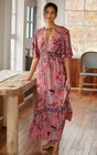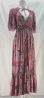 Anthropologie Womens Ruffled Embroidered Maxi Dress Size XS Cottagecore Pink good used condition, missing last button at bottom of dress (hardly noticable) - see pictures