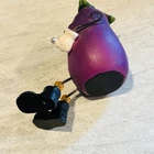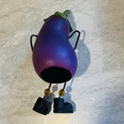 Anthropomorphic Eggplant with a Spoon Whimsical Happy Smiling Kitchen Shelf Sitter. Cute as can be. About 4 inches high plus little legs. Good condition.