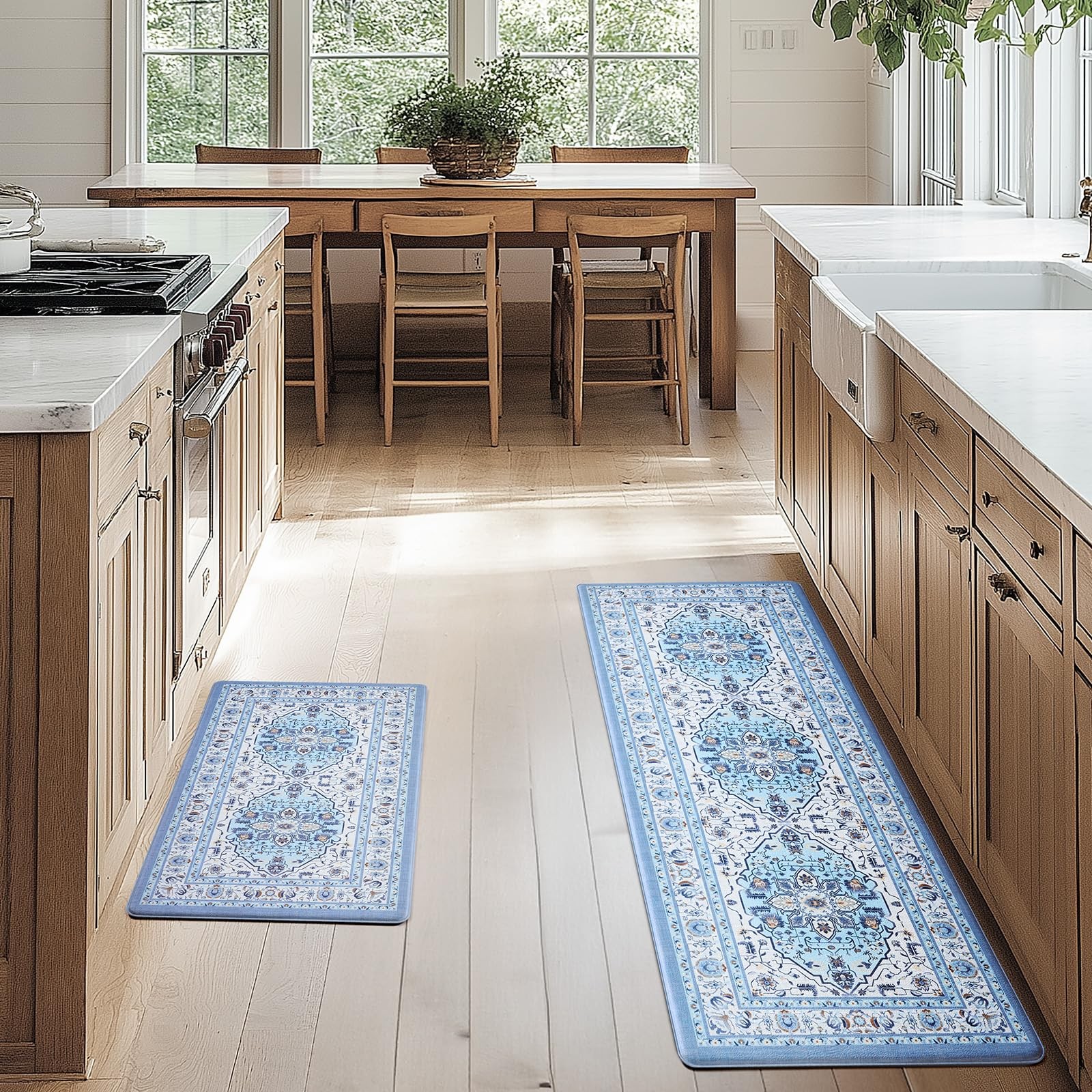 Anti Fatigue Kitchen Mats Chic Medallion Design - Add some boho flare to your home with the neutral palette of our kitchen mat. Channeling the essence of a global Medallion-inspired print complements your existing decor. Our kitchen rug is a game-changer for anyone looking to elevate their kitchen decor. Soft & Comfortable - The anti-fatigue cushioned kitchen floor mats are ergonomically engineered, provide unparalleled comfort and support for your feet, indulge in the comfort of High-Density foam, so you can stand at the kitchen sink or stove for hours without any discomfort. Easy Clean & Waterproof: Our boho kitchen rug is made of water and stain-resistant materials, making wiping it down a breeze. Simply wipe it clean with a damp cloth or common detergent, or use a hand-held vacuum as needed. You'll love how it always maintains a clean and fresh appearance. Non-slip Backing - The kitchen rug mat is designed with an anti-slip backing that provides safe footing for your family. It keeps the mat securely in place, preventing slips and falls on any surface, perfect for elderly, kids and pets. Built to Last - Our kitchen mat is made from premium quality materials and OEKO-TEX 100 CERTIFIED. Designed to withstand daily wear and tear, this kitchen rug is an ideal choice for high-traffic areas in your home or workplace. With its superior craftsmanship, our mat will remain in great condition for years to come.