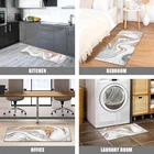 These kitchen mats are a game-changer! The cushioned memory foam feels amazing underfoot, easing fatigue during long cooking sessions. The non-slip PVC leather keeps them securely in place while the stylish white marble design adds a sleek touch to my kitchen. I love the set of two sizes—perfect for covering different work areas. Super comfortable, easy to clean, and arrived quickly!