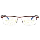 Three different applications of multifocal glasses for all your needs (for medium to close, transition, distances of about 3 feet) Distance Strength -- The reading glasses top part is 0 strength for distant viewing, walking, and shopping. This means you can wear progressive reading glasses anytime and anywhere. There is no longer a need to take it on or off as often. Transition Strength -- The multifocal progressive transition middle part is slightly diminished magnification for working on computers, videoconferencing on laptops, watching TV, etc. Reading Strength -- The bottom part of the lens is full power, which is your choice of magnification for reading small print in books up close or making diamond paintings or digital paintings. No line multifocal reading glasses also available as workspace multifocus glasses are designed for people who work at a desk or other workplace for long periods of time, providing more comfort and visual clarity. Specifications 100% Brand New Gender: Unisex Adults Frame Color:Black/Gold/Red Function: Multi-focus progressive color change anti-blue light Magnification Strength:=+1.00 strength, =+1.50 strength, =+2.00 strength, =+2.50 strength, =+3.00 strength, =+3.50 strength, =+4.00 strength Package included 1x Reading Glasses Note: